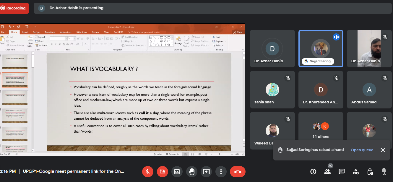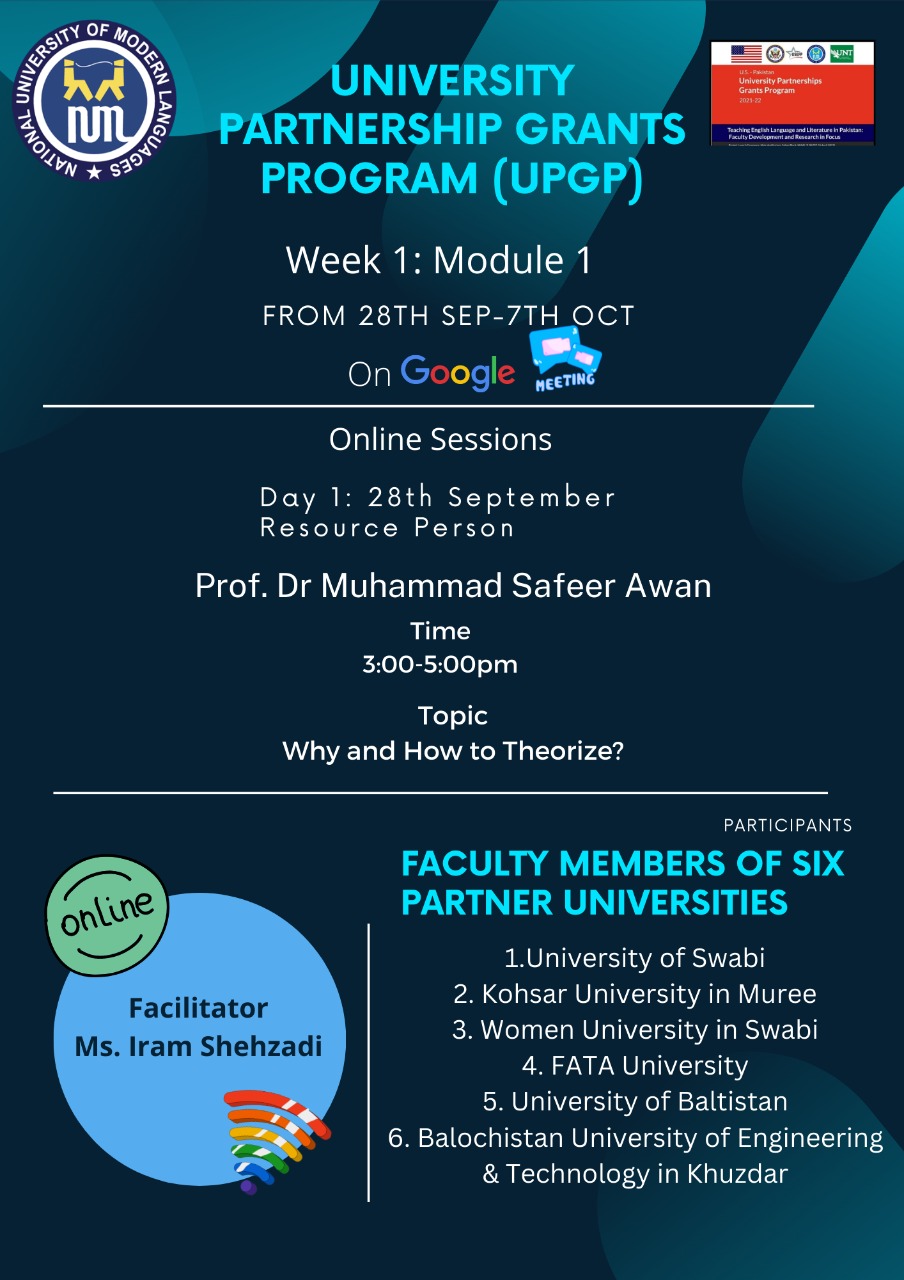 Phase 1 of first Grant was held online on zoom. The trainers were teachers from NUML who went University of North Texas for training. The online session started on 28th September and ended on 7th October.